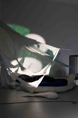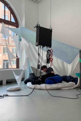 a wetness with limbs with Simone Körner, 2021, installation with sounding windows, performance and living environment, durational performance with video, sound and body